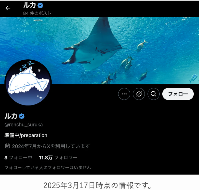 雨海ルカのXアカウントは、もともとルカ名義で文字練習に使われていた裏垢。